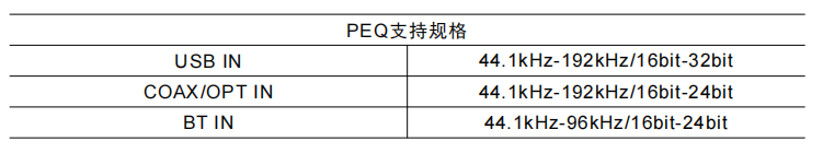 PEQ支持规格: